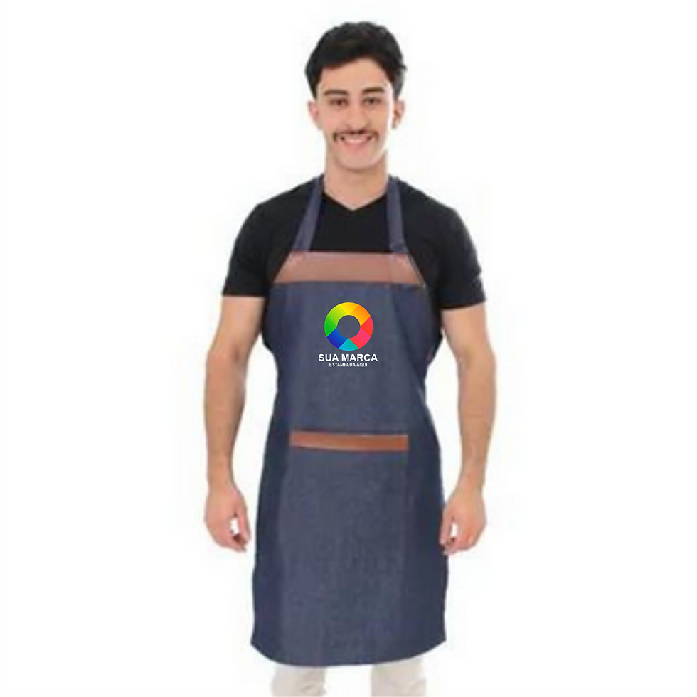 Avental de Brim Jeans com estampa personalizada colorida. Mínimo 6 peças